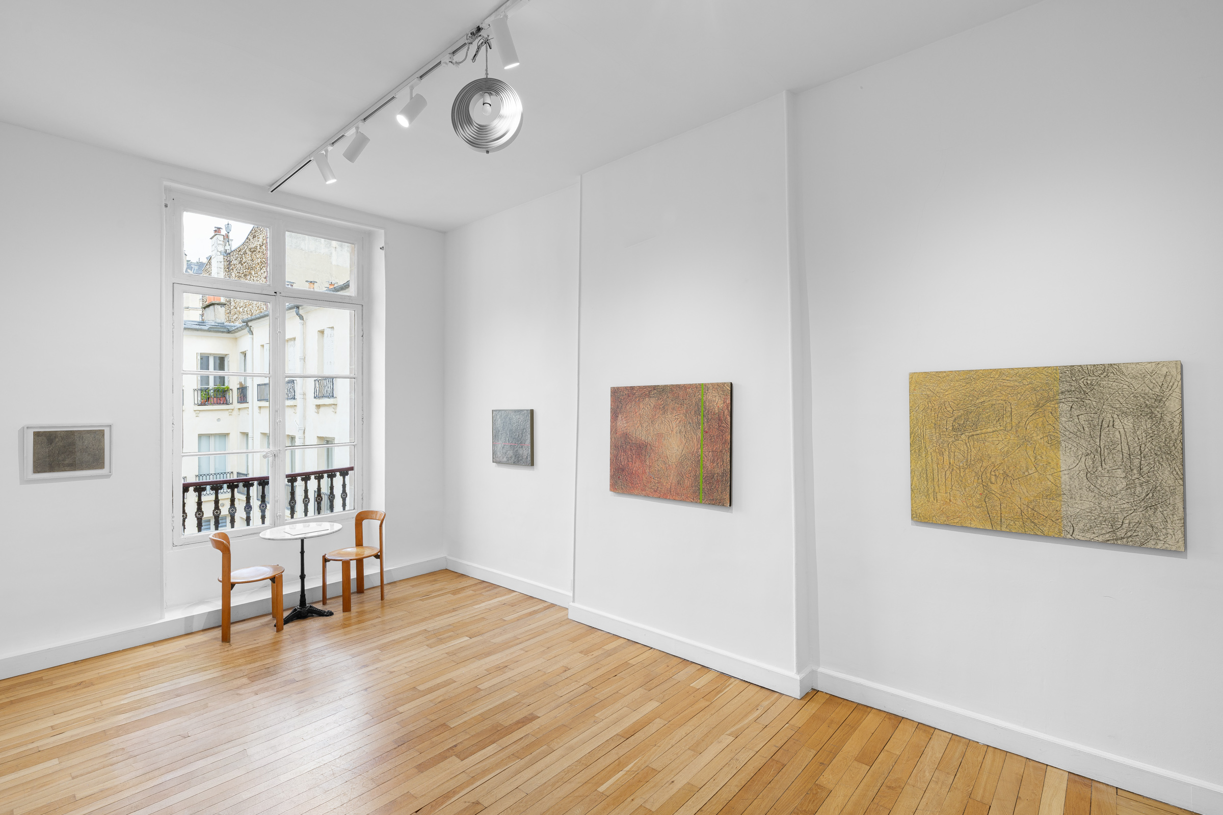Installation view. Photo-Mechanical Blow-Ups, 1983 by Joseph Nechvatal, 2025. Place des Vosges, Paris.