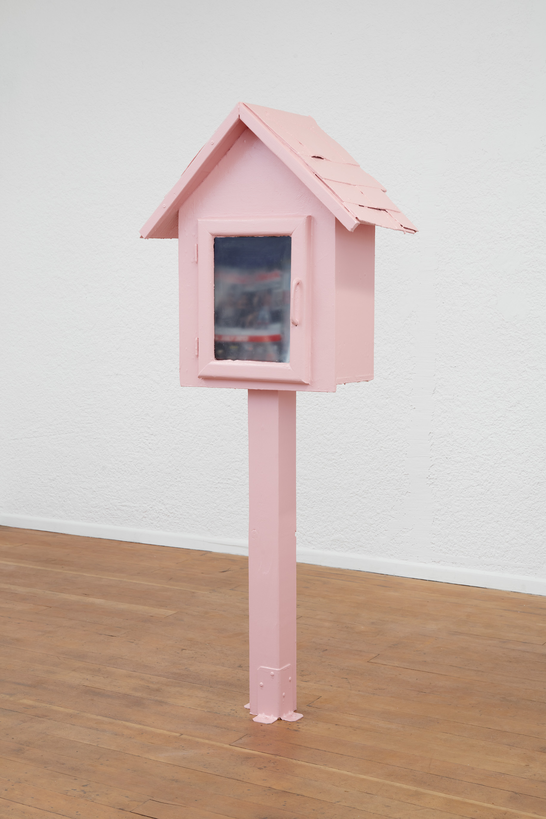 Louis Blue Newby, Commons, 2025. Found Little Free Library, pornography and erotic literature, Farrow & Ball No. 278 Nancy’s Blushes Full Gloss, 60.5 x 25.5 x 13 in. (153.7 x 64.8 x 33 cm).