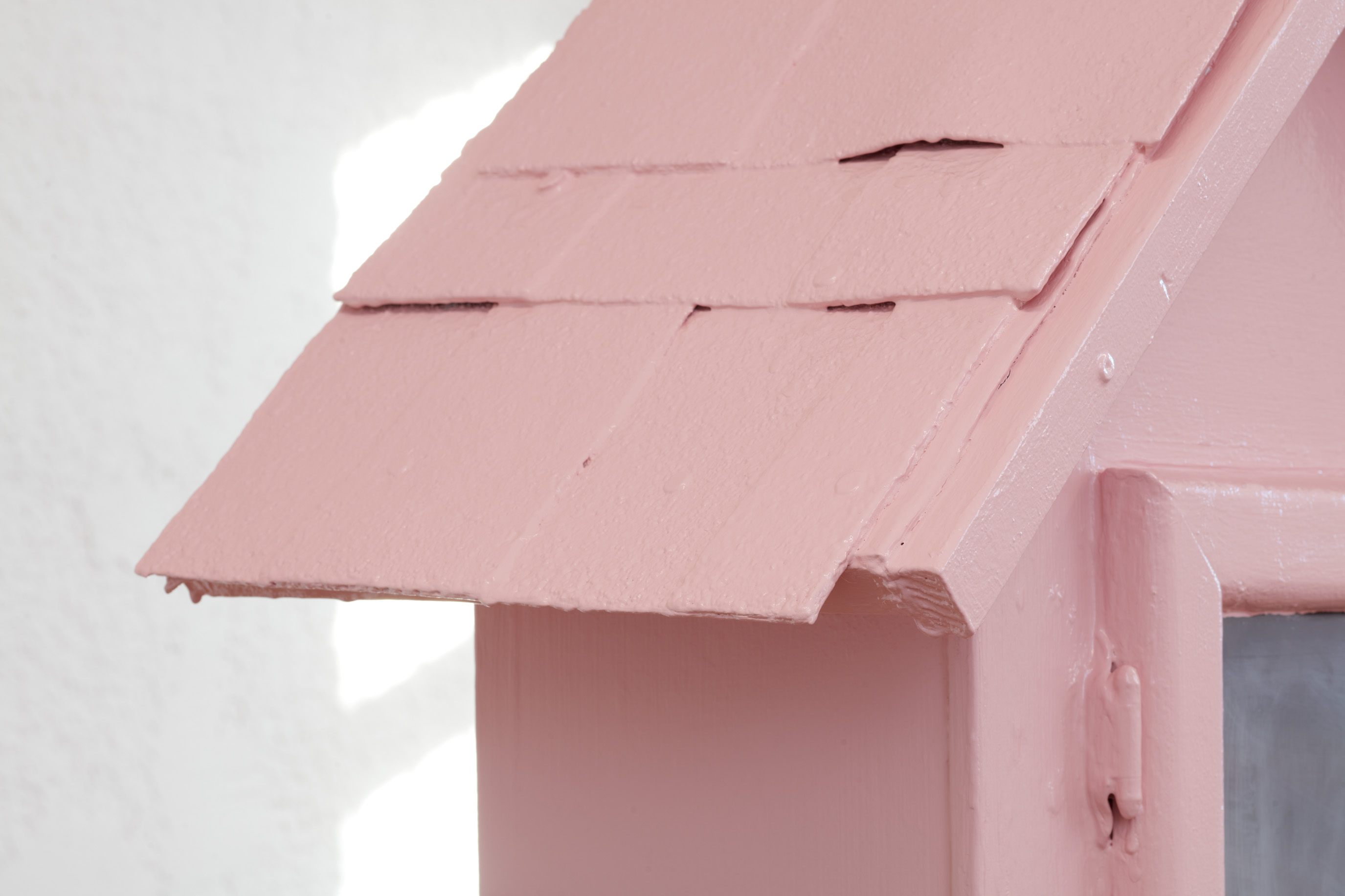 Detail. Louis Blue Newby, Commons, 2025. Found Little Free Library, pornography and erotic literature, Farrow & Ball No. 278 Nancy’s Blushes Full Gloss, 60.5 x 25.5 x 13 in. (153.7 x 64.8 x 33 cm).